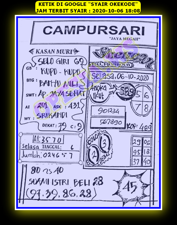 Forum syair okekode. Syair opesia menjadi salah satu gambaran untuk menemukan angka jitu singapore atau sgp. Hingga mempunyai pengaruh besar kepada para pemain togel hk untuk mendapatkan angka jitu hk. Maka dari itu kami disini menampilkan berbagai gambar-gambar syair yang jitu dan beredar di dunia maya menjadi satu.